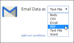 - PDF: Sends a PDF file attachment on the email, generated using either a generic PDF output or the Word/Excel template provided.