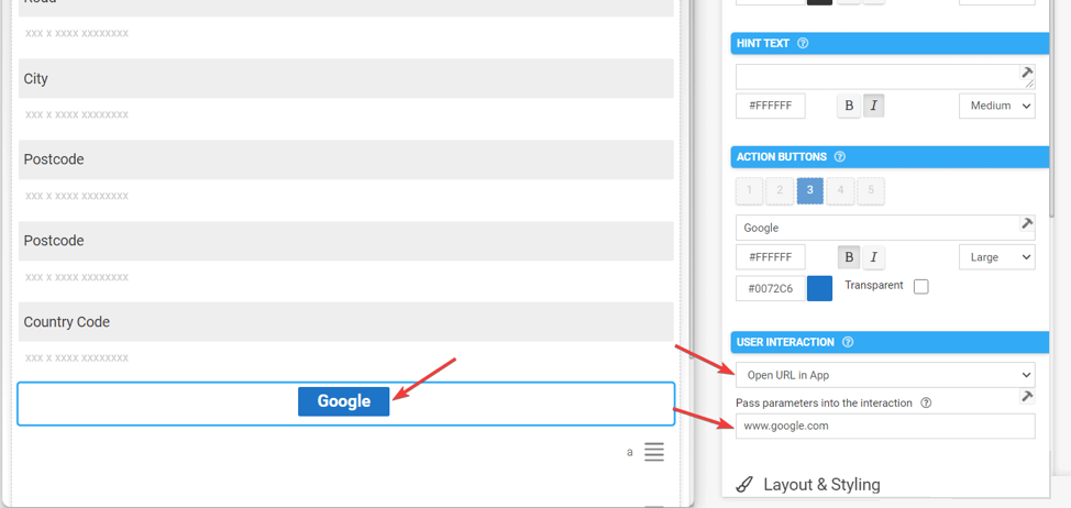 Setting up the field on the Amplus Forms platform (as pictured above) will open Google within the mobile app when the button is clicked.