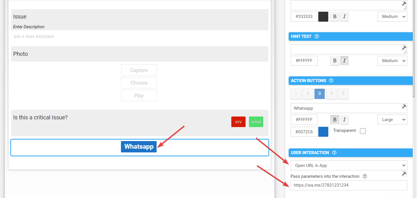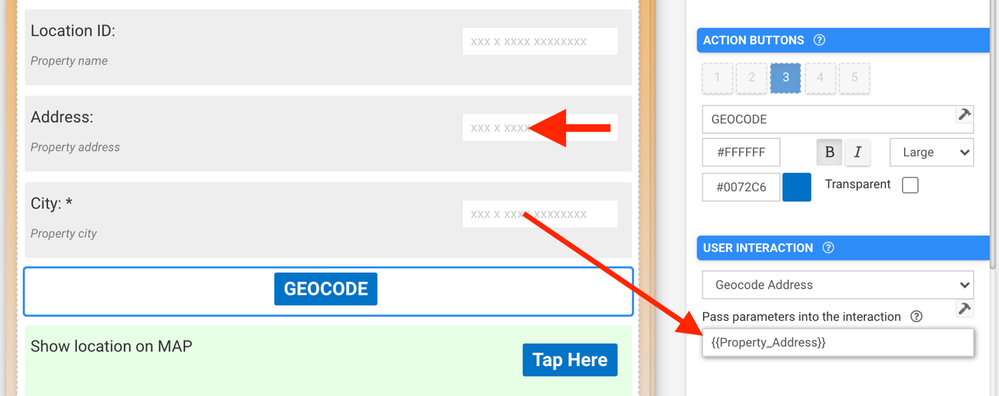 User interactions on an Action Button are typically used to launch screens, create navigation or upload your form. They are also great for quick communication, launching mobile apps or even converting an address into GPS coordinates.
