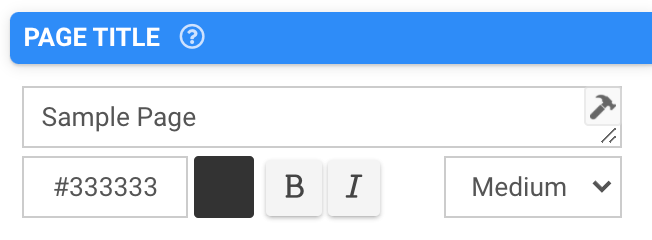 The text color may be chosen with a hex code. The text may be also formatted as Bold or Italic and given a relative size - Small, Medium (the default) or Large.